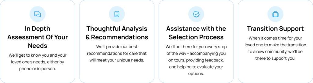 Don’t face the anxiety of selecting the best option alone. A senior care advisor will eliminate the guesswork and ensure you choose the best option for this next part of life.